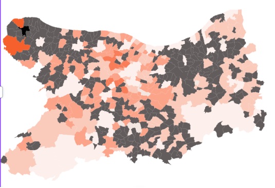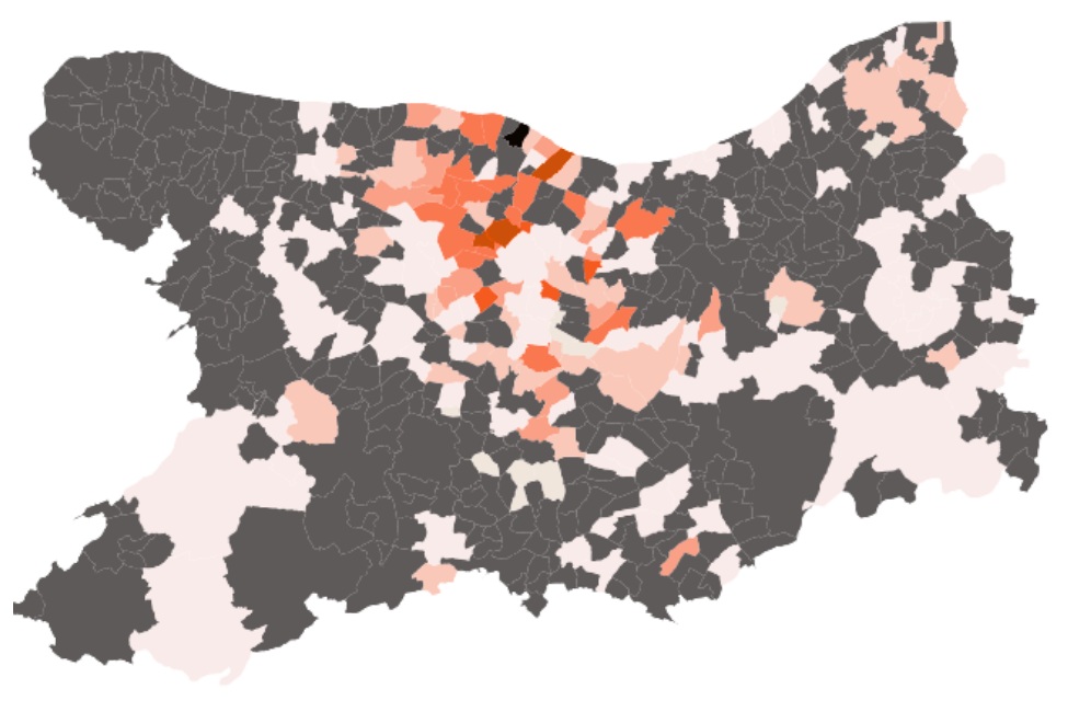 Pour comprendre les cartes : plus la zone bleue est foncée, plus elle est demandée. Attention si la zone est en gris foncé, c’est qu’il n’y a pas de données…